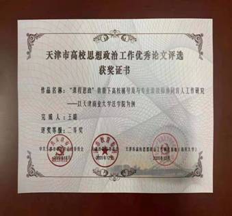 开云王璐老师获“2020年度天津市高校思想政治工作优秀论文评选”二等奖